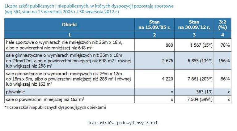 Najwyższa Izba Kontroli ocenia pozytywnie, mimo stwierdzonych nieprawidłowości, działania ministra sportu i turystyki na rzecz rozwoju wychowania fizycznego i sportu szkolnego realizowane w ramach Strategii rozwoju sportu w Polsce do roku 2015.