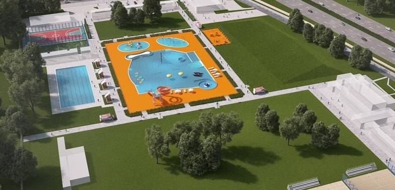 Przebudowa zakłada przekształcenie obszaru polegające m.in. na wprowadzeniu w centralnej części, w miejscu istniejącego basenu rekreacyjnego nowej, wydzielonej przestrzeni – plaży o nawierzchni syntetycznej EPDM (z odzyskiem ciepła) na której znajdą się nowe niecki basenowe.