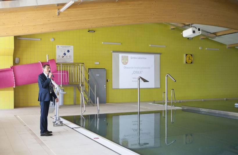 Po symbolicznym przecięciu wstęgi dziekan dekanatu lubartowskiego ks. Andrzej Juźko dokonał poświęcenia nowego obiektu. W dalszej części uroczystości odbywającej się wewnątrz obiektu Wójt Gminy Lubartów Krzysztof Kopyść prezentował historię powstania basenu, przebieg współpracy z samorządem Miasta Lublin oraz przebieg samego procesu inwestycyjnego. Słowa uznania i gratulacje skierowali do zgormadzonych zaproszeni goście, życząc, aby pływalnia była tętniącym życiem miejscem.