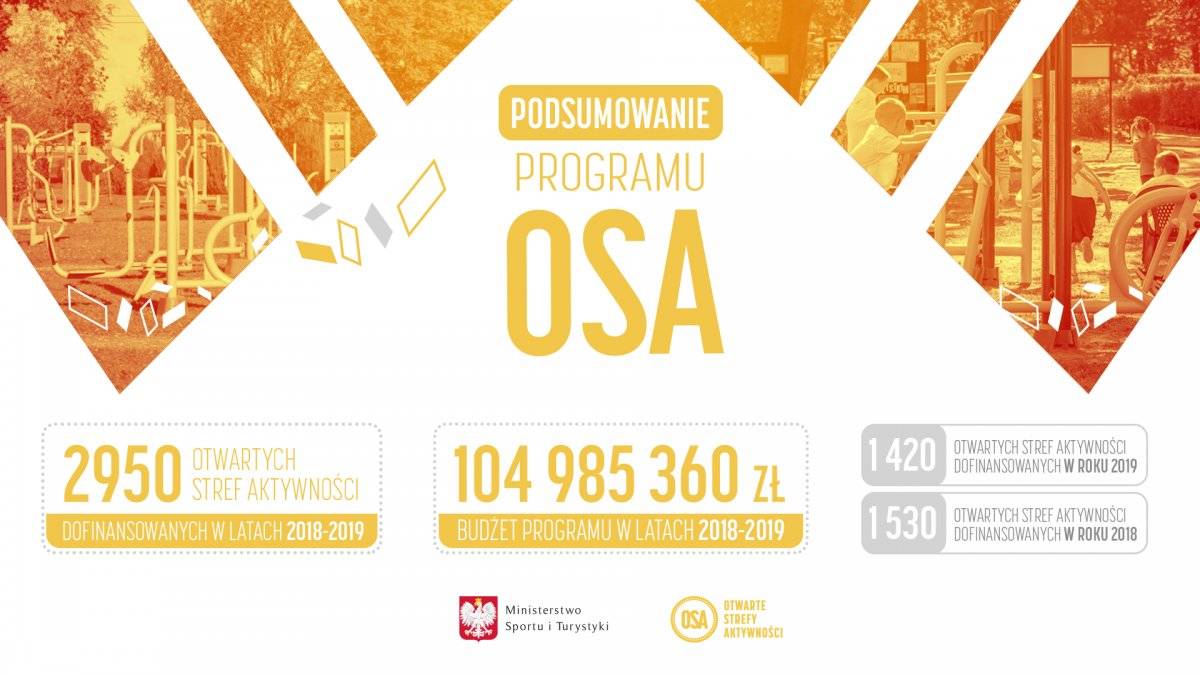 - „Udało nam się osiągnąć zamierzony cel. Kiedy dwa lata temu przedstawialiśmy założenia Programu OSA wiedzieliśmy, że wielofunkcyjne strefy aktywności znajdują się w czołówce najbardziej pożądanych obiektów infrastruktury sportowo-rekreacyjnej. Otwarte Strefy Aktywności są odpowiedzią na to zapotrzebowanie. W ciągu dwóch lat dofinansowaliśmy 2 950 obiektów, przeznaczając na ten cel blisko 105 mln zł. Mam nadzieję, że będą to miejsca spotkań i aktywności całych rodzin” - powiedział Minister Sportu i Turystyki.