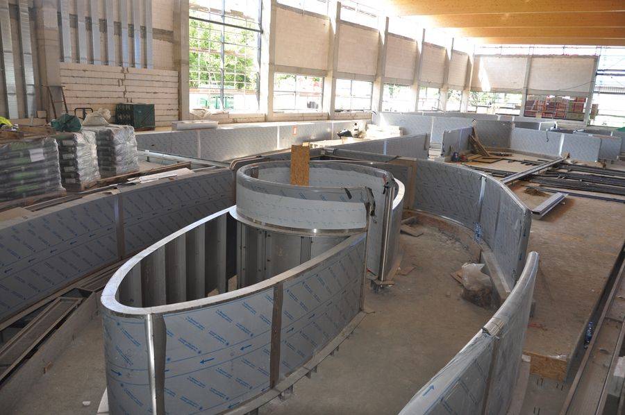 Na parterze budynku znajdą się punkty kasowe oraz szatnie wyposażone w 227 szafek dla 554 osób, 20 przebieralni (w tym jedna dla osób niepełnosprawnych) oraz dodatkowo 2 szatnie dla grup zorganizowanych (łącznie 105 osób) i 3 przebieralnie (w tym jedna dla osób niepełnosprawnych).