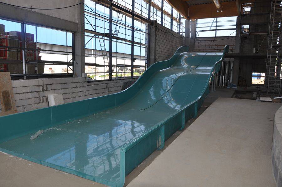 Widoczny już w „realu” budynek Parku Wodnego ma trzy kondygnacje oraz podpiwniczenie, w którym znajdzie się parking na 46 miejsc parkingowych – z blisko 230 łącznie planowanych do obsługi kompleksu. Kształt budynku i jego lokalizacja (dłuższym bokiem równolegle do ul. Dekabrystów) umożliwi pozostawienie maksymalnie dużych powierzchni plażowych między nim a istniejącą Pływalnią Letnią. Od wschodu znajdzie się plac gospodarczy z wejściami technicznymi, natomiast hala basenowa stanowi południowo-zachodnią część budynku Parku Wodnego. W jej centrum hali znajdzie się niecka rekreacyjna z atrakcjami wodnymi. Wydzielono także mniejsze strefy – dziką i leniwą rzekę, grotę sztucznej fali, część ze sztuczną falą wytwarzaną za pomocą kuli, strefę z masażami pod- i nawodnymi oraz gejzerami powietrznymi, a także strefę relaksu z leżankami i ławeczkami z masażem. W pobliżu niecki rekreacyjnej zaplanowane są baseny z hydromasażem oraz miejsca wypoczynku na leżakach. Będzie też strefa z brodzikiem dla dzieci.