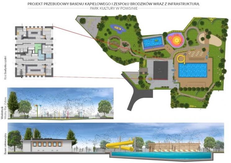 Park Kultury w Powsinie już niedługo odda do użytku kolejny obiekt po modernizacji. Tym razem jest to nowoczesny zespół basenów kąpielowych przystosowany dla dorosłych, dzieci i osób z niepełnosprawnościami. Kompleks kąpielowo-wypoczynkowy usytuowany na terenie o powierzchni całkowitej 6368,19 m2. Z czego niecki basenów zajmują powierzchnię 475,64m2, wodny plac zabaw z nawierzchnią EPDM i wodotryskiem – 166,40 m2.