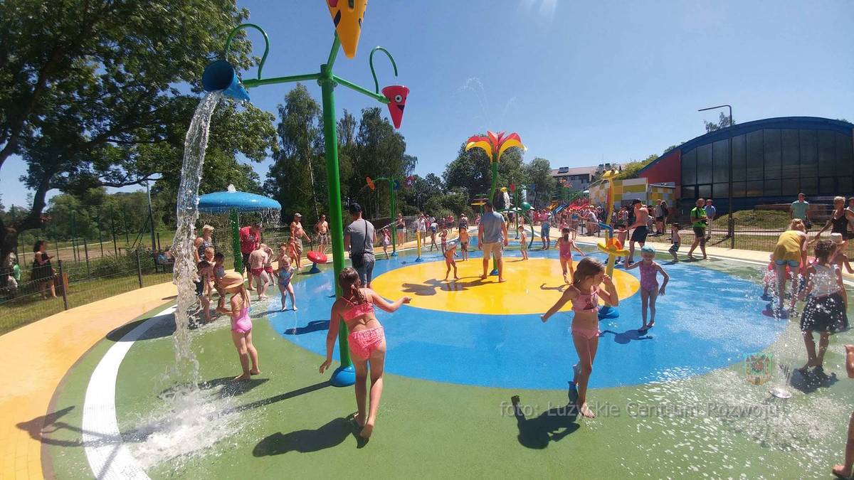 Co czeka nas na nowej miejskiej atrakcji? Wiadro, ogon pawia, lejek, armatki, wiaderka, sikawki elastyczne, kaskady z przegrodami, wodospad-bramka czy koło łopatkowe, a do tego strefa zjeżdżalni. Te atrakcje wodne z pewnością umilą wakacje. Wodny Plac Zabaw składa się z dwóch części. W pierwszej są różnego rodzaju natryski wodne, z których mogą korzystać dzieci bez limitu wiekowego (do 10 lat wymagany jest opiekun). Druga część ze zjeżdżalniami przeznaczona jest dla osób od 80 cm do 1,60 m. Warunkiem jest tu jednak umiejętność pływania. Tuż przy placu znajduje się strefa rekreacyjna z ławkami oraz zaplecze higieniczno-sanitarne. W godzinach otwarcia obiektu na jego terenie funkcjonował punkt medyczny, a nad bezpieczeństwem użytkowników czuwało dwóch ratowników wodnych. Jednorazowo na terenie placu może przebywać około 80 osób. Dyrektor Miejskiego Ośrodka Sportu i Rekreacji, Małgorzata Garula oraz Burmistrz Miasta Lubań, Arkadiusz Słowiński serdecznie zapraszają do korzystania z obiektu w okresie letnim.