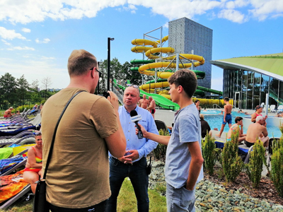 Wczoraj 31 lipca br. z okazji urodzin zorganizowano szereg atrakcji i konkursów dla klientów Aquaparku. Nie obyło się bez słodkości – każdy mógł poczęstować się kawałkiem wielkiego urodzinowego tortu, a urodzinową imprezę z transmisją na żywo prowadziła ekipa z Radio Eska Summer.