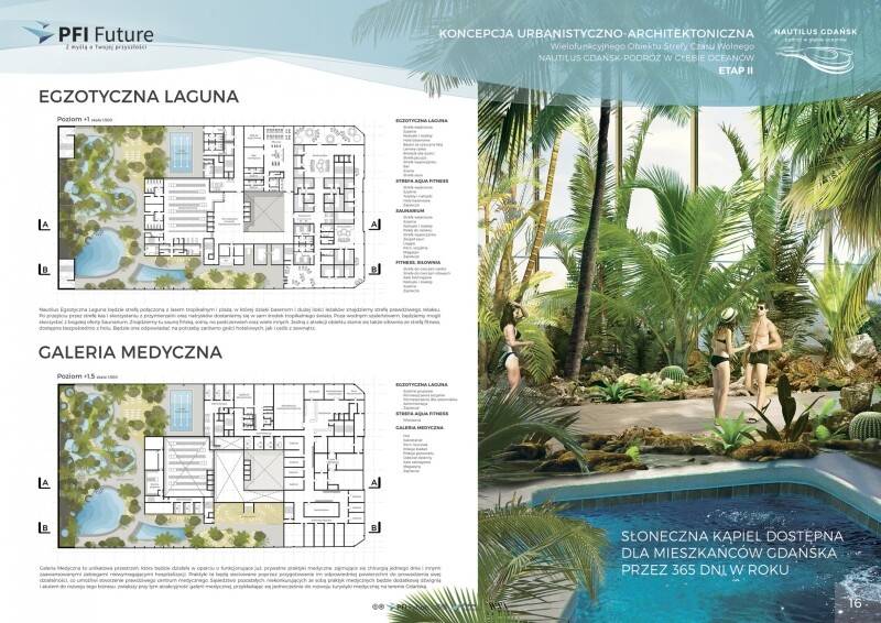 Inwestycja na powierzchni ponad 50 tys. m2 rozpocznie się od budowy oceanarium Nautilus Gdańsk, w którym będzie można podziwiać najpiękniejsze morskie rośliny i zwierzęta z rejonu Ameryki Południowej. W kolejnym etapie powstanie hotel, strefa medyczna, spa, oraz Egzotyczna Laguna o powierzchni 10 220 m2 – strefa z dziewięcioma basenami o łącznej powierzchni 863 m2 oraz plażą liczącą 400m2 z bezpośrednim dostępem do wody.