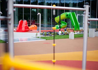 W strefie dziecięcej maluchy mogą korzystać z wielu atrakcji m.in.: zjeżdżalni, zabawek wodnych, a na zewnątrz z dziecięcego baseniku z dwoma zjeżdżalniami i zabawkami wodnymi, dodatkowo specjalnie dla naszych najmłodszych klientów w części zewnętrznej strefy jest bezpieczny placu zabaw.