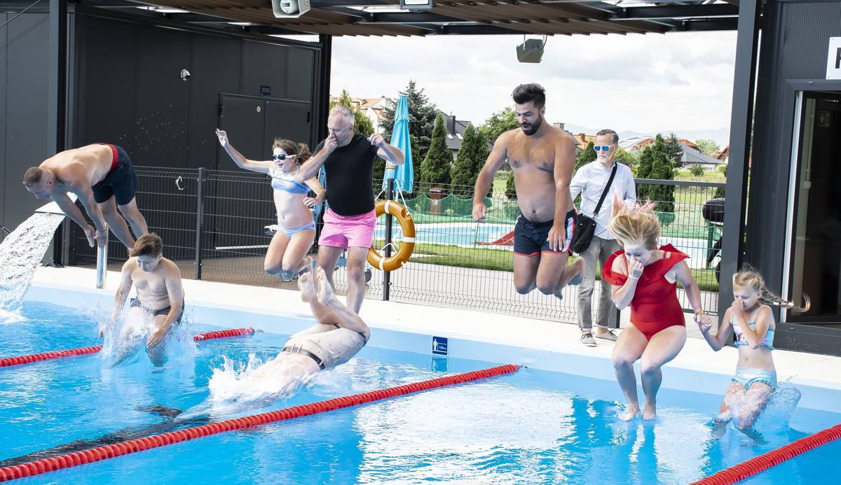 Po oficjalnym otwarciu prezydent Ludomir Handzel wskoczył wraz z dziećmi i radnym Dawidem Dumaną do basenu, czym dał zielone światło do korzystania z obiektu.