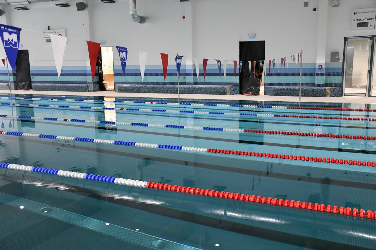 Basen pływacki, posiada sześć torów o długości 25 metrów oraz ruchome dno, umożliwiające regulację głębokości niecki. Mniejszy basen, rekreacyjny, przystosowany jest do nauki pływania dla najmłodszych.