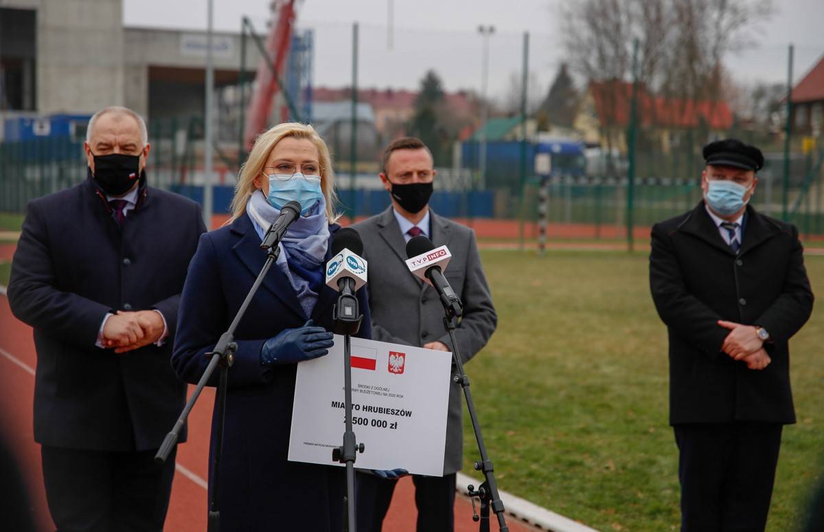 - Hrubieszów jest ostatnim miastem powiatowym na Lubelszczyźnie, które nie miało dotychczas krytego basenu, z którego mieszkańcy mogliby korzystać – mówił wiceprezes Rady Ministrów Jacek Sasin podczas wizyty w Hrubieszowie. Przekazując burmistrz miasta Marcie Majewskiej promesę na dofinansowanie inwestycji w wysokości 2,5 mln zł z ogólnej rezerwy budżetowej na 2020 rok, zapewniał o dalszym wsparciu dla miasta.