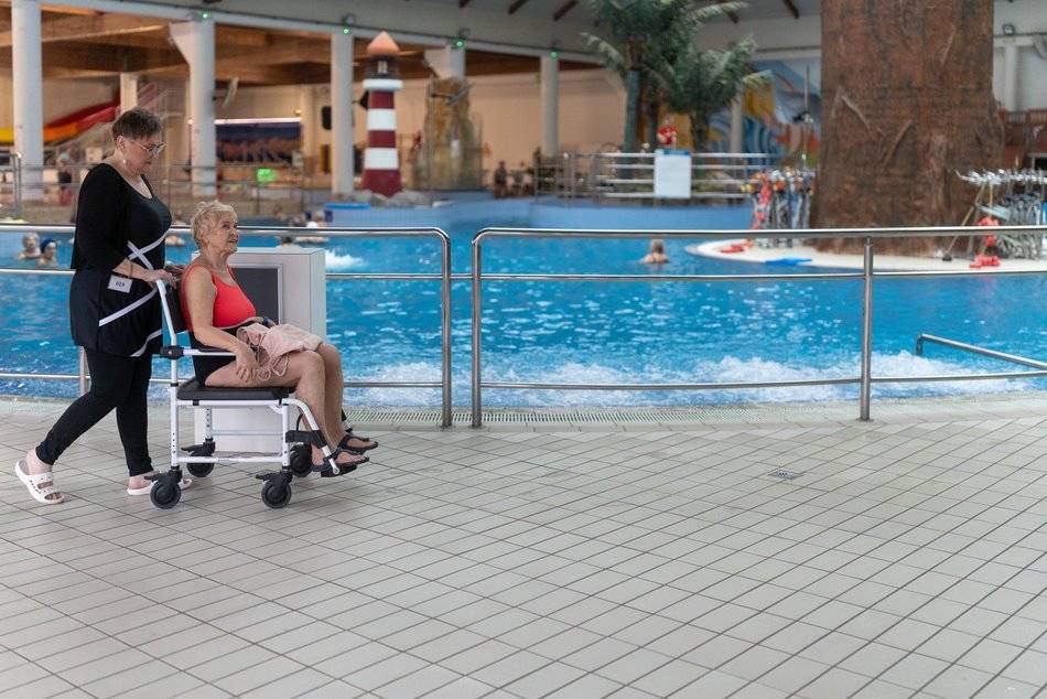 - zakup dwóch nowych wózków basenowych, którymi można wjechać pod prysznic,