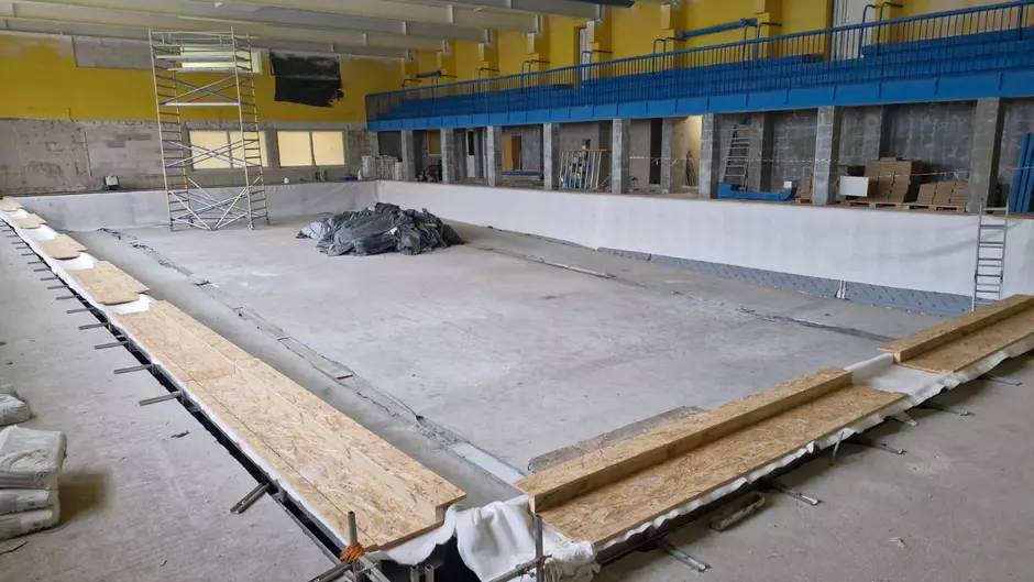 „Zamontowane zostały pionowe ściany stalowej niecki basenowej. Zakończono też prace remontowo - budowlane w pomieszczeniu technologii basenowej. Aktualnie trwają prace spawalnicze, wzmocniono specjalnymi matami węglowymi elementy konstrukcyjne podbasenia. Prowadzone są również prace budowlane oraz instalacyjne w szatniach i sanitariatach znajdujących się przy sali gimnastycznej oraz basenie. Na teren obiektu dostarczono już część urządzeń technologii basenowej” - mówi Aneta Niezgoda z Dyrekcji Rozbudowy Miasta Gdańska