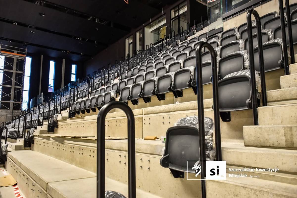 Aktualnie na miejscu prac trwa montaż krzesełek na hali sportowej i basenowej oraz przegrody basenowej i wiele prac wykończeniowych. Prace zbliżają się do momentu, w którym obiekt zaczyna wyglądać jak gotowy.