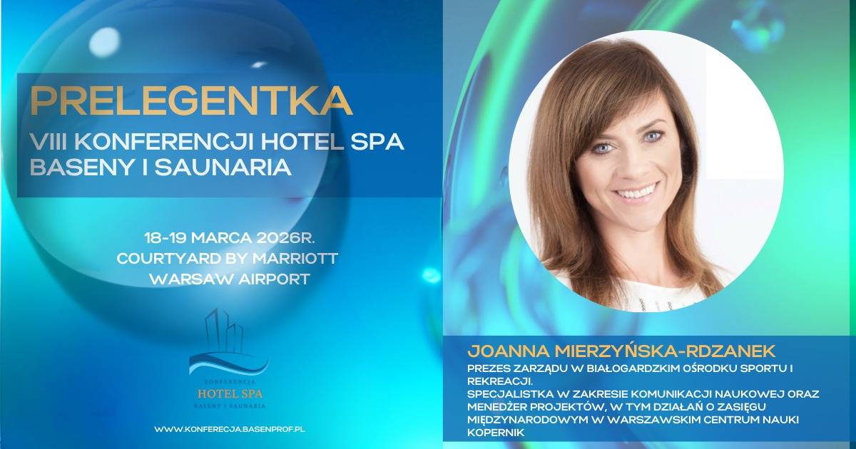 Konferencja Hotel Spa BASENY i SAUNARIA odbędzie się w dniach 18-19 marca 2026r. W hotelu Courtyard Marriott Airport w Warszawie. To wyjątkowe i jedyne w Polsce wydarzenie z konkretną i obszerną wiedzą branżową, dzięki której zarządzanie obiektem będzie łatwiejsze, zoptymalizowane i bardziej efektywne, a także platforma wymiany doświadczeń i możliwość nawiązania konkretnych kontaktów biznesowych, oraz spotkania z najlepszymi branżowymi ekspertami.