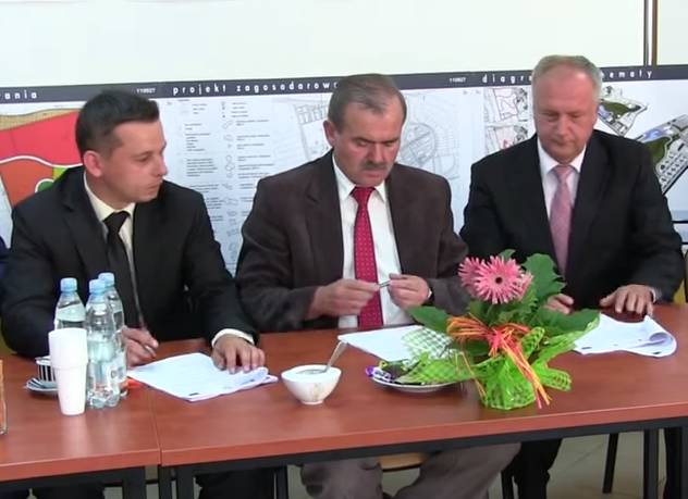 Podpisanie umowy na wykonanie odwiertów - lipiec 2014r. - foto archiwum Starstwa Powiatowego w Kazimierzy Wielkiej
