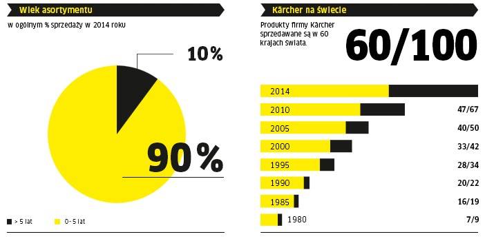 Ponad 50 000 punktów sprzedaży urządzeń na całym świecie zapewnia ciągłość dostaw i realizowanie potrzeb klientów. Innowacyjność ponownie była jednym z najważniejszych czynników sukcesu: 90% produktów Kärcher nie jest starsza niż pięć lat. W poprzednich latach firma zaprezentowała ponad 120 nowych produktów i złożyła 58 wniosków o przyznanie patentu.