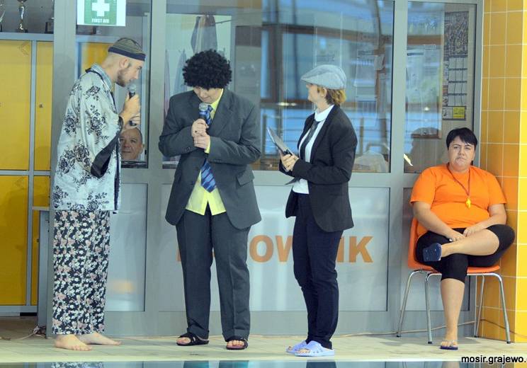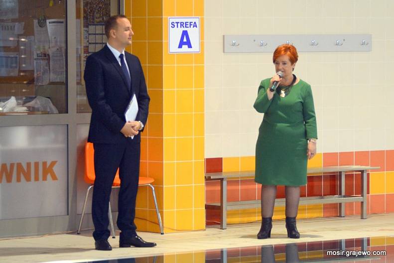 Gospodarzem części oficjalnej urodzin Pływalni Miejskiej był pełniący obowiązki Dyrektora Miejskiego Ośrodka Sportu i Rekreacji w Grajewie Dariusz Brzózka, który przedstawił wszystkim zgromadzonym krótką informację podsumowującą pierwszy rok działalności obiektu. Burmistrz Miasta Grajewo wręczył pamiątkowe listy gratulacyjne wyróżniającym się pracowników za ich sumienność i zaangażowanie w codzienną pracę a Centrum Integracji Społecznej w Grajewie odegrało wspomniany skecz, który w satyryczny sposób zobrazował wizytę urzędnika państwowego na pływalni.