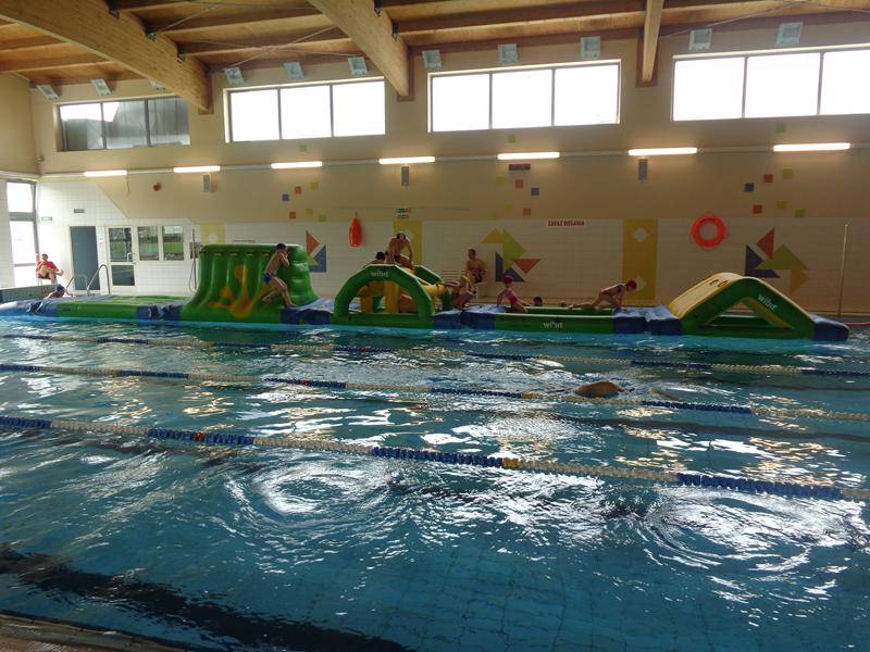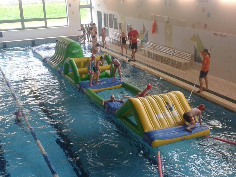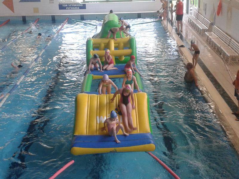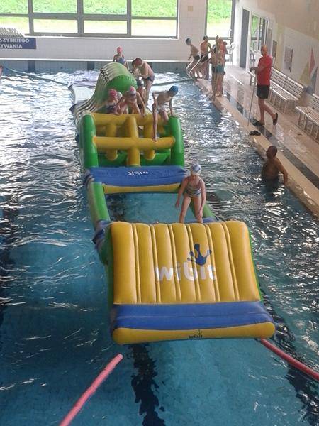 Wystawiony wodny tor przeszkód cieszył się zainteresowaniem nie tylko wśród najmłodszych bywalców naszej pływalni. Wzbudzał zainteresowanie również i dorosłych. Mam nadzieję, że wypożyczony tor dostarczył dzieciom i dorosłym dużo emocji przez cały tydzień i urozmaicił atrakcyjność naszego obiektu.