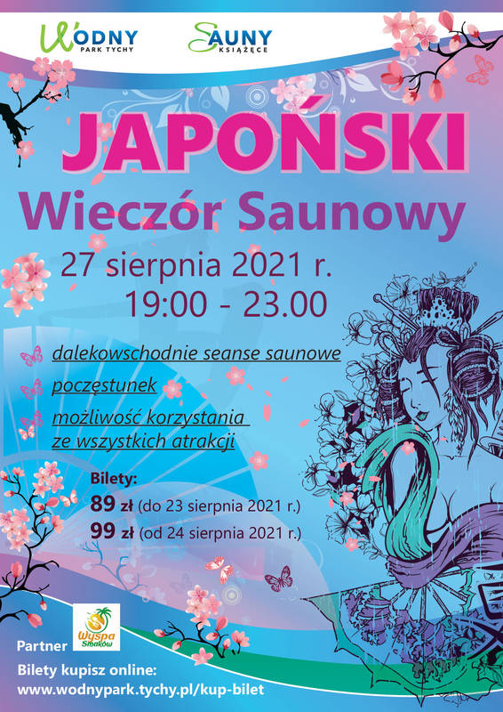 27 sierpnia bilety regularne w sprzedaży tylko maksymalnie do godziny 17.30. Potem obowiązują bilety na Japoński Wieczór Saunowy.