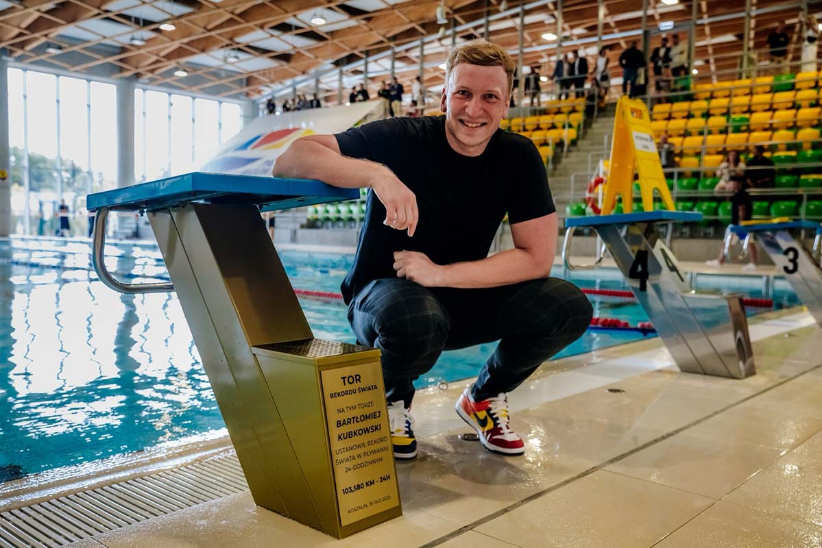 Jubileusz był idealną okazją do uhonorowania pływaka Bartłomieja Kubkowskiego, który na basenie sportowym pobił rekord świata w 24-godzinnym pływaniu – to wielki wyczyn, który od wielu lat nie udał się żadnemu pływakowi na świecie. Rekord został pobity w dniach 18–19 stycznia 2025 roku. Z tej okazji w Parku Wodnym stanął złoty słupek startowy – symbol tego historycznego osiągnięcia. Wydarzeniu towarzyszyła wystawa zdjęć autorstwa fotografów Tomasza Klimczyka oraz Mariusza Kuika, dokumentująca 24-godzinną walkę o niepokonany tytuł.