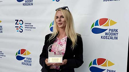 Pol-Glass Sp. z o.o. sp.k, specjalizująca się projektowaniu i budowie zjeżdżalni i atrakcji wodnych – statuetkę odebrał Dyrektor Sprzedaży i Marketingu Michał Włosowski.