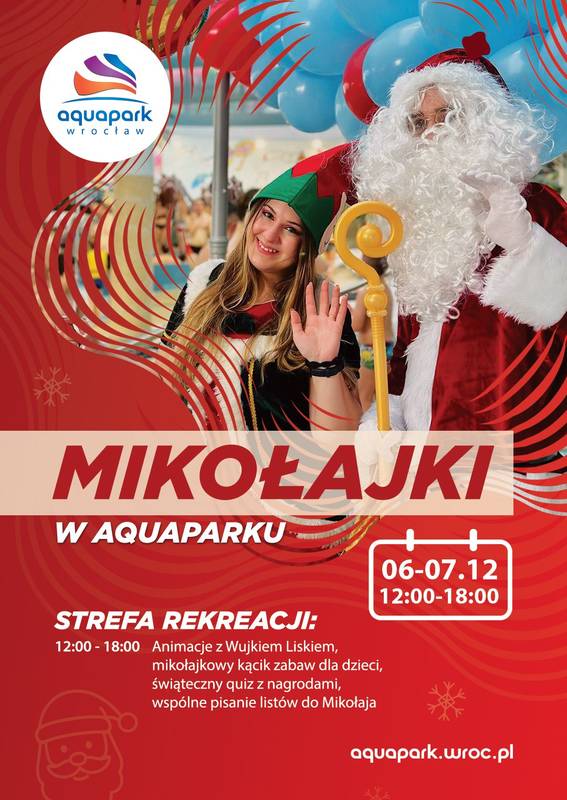 Aquapark Wrocław szykuje dla odwiedzających wyjątkowy, świąteczny weekend pełen atrakcji. Na gości czeka bogaty program wydarzeń, który ma zapewnić rodzinną, magiczną atmosferę i umilić czas zarówno najmłodszym, jak i tym starszym gościom.